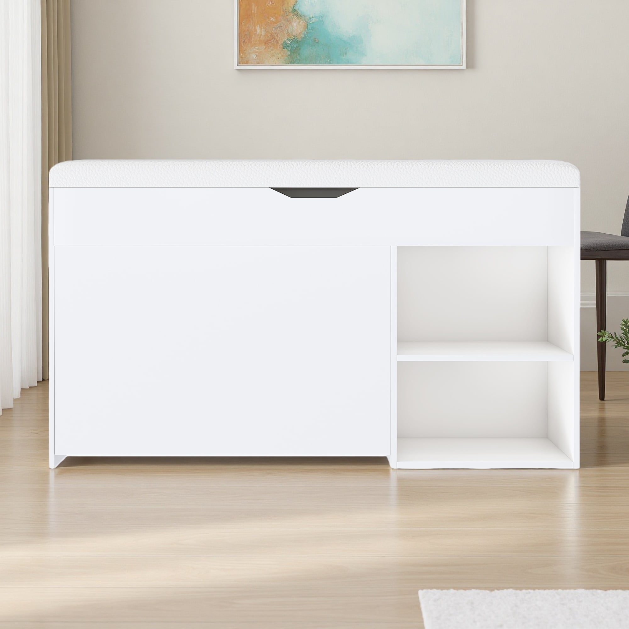 39"L Entryway Bench with Shoe Storage, Adjustable 3-Tier Flip-Up Drawers & Hidden Cabinet, Shoe Organizer, Triple Storage