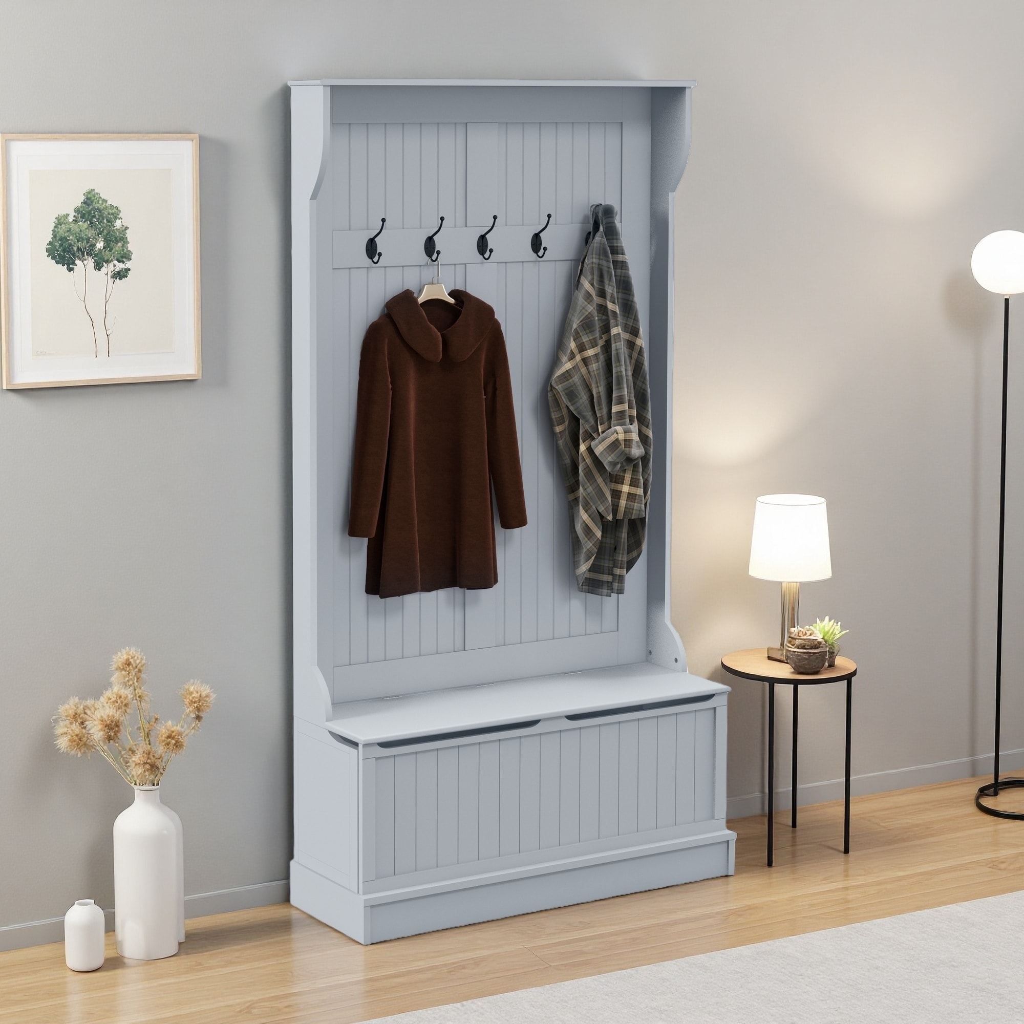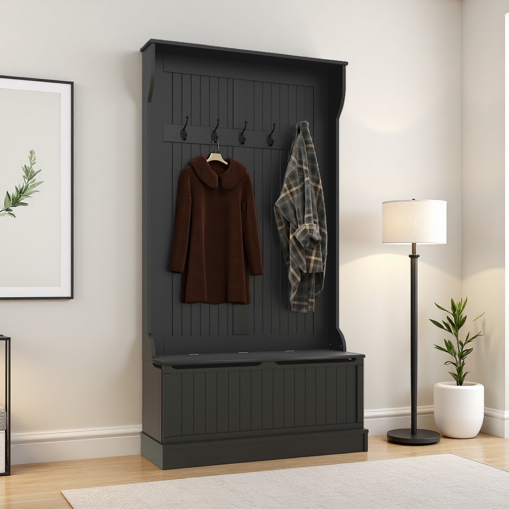 37.8"L Entryway Hall Tree with Storage Bench Coat Rack with Four Hooks, Shoe Storage, Organizer for Hallway, Anti-Tipping Safety