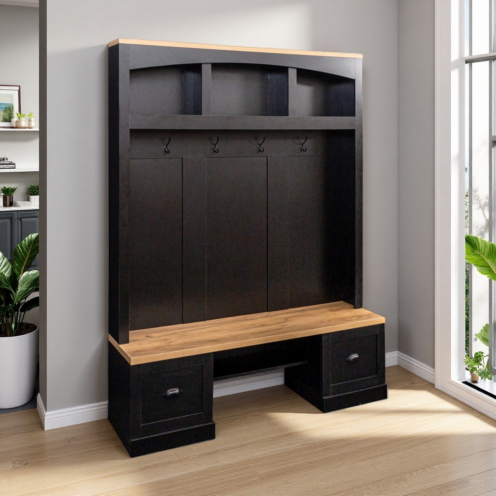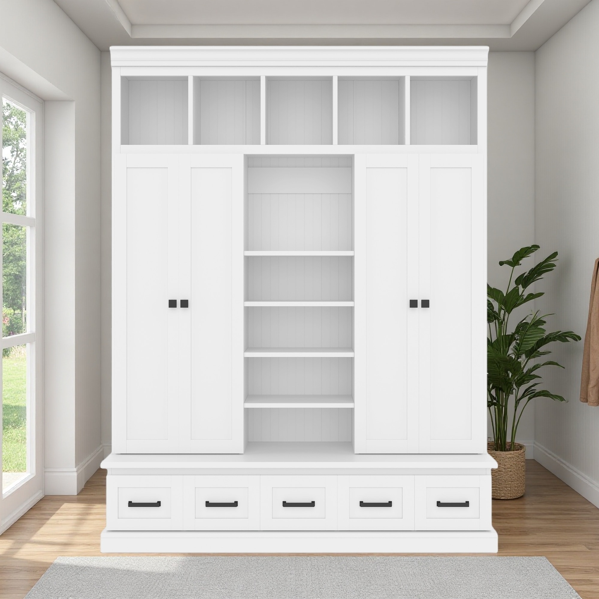78.7''H MDF Hall Tree with Bench, 5 Storage Cubbies, 4 Doors, 5 Drawers, Adjustable Shelves, Versatile Entryway Organizer