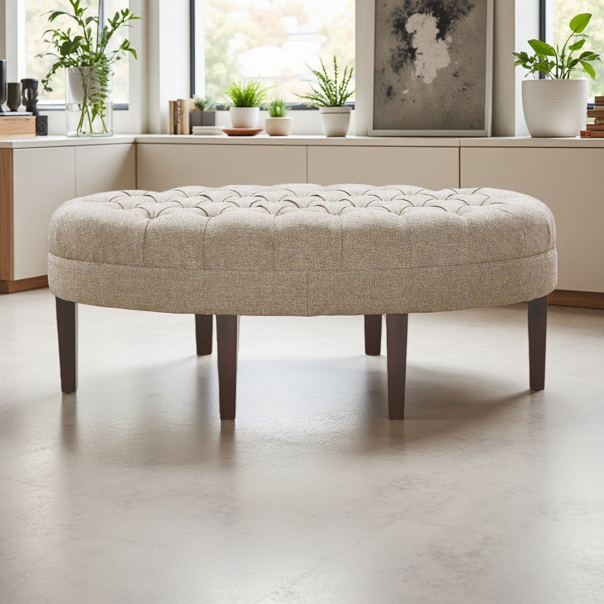 48"L Large Oval Upholstered Ottoman with Button Tufting, Solid Wood Legs, Living Room Centerpiece with Foam Cushion