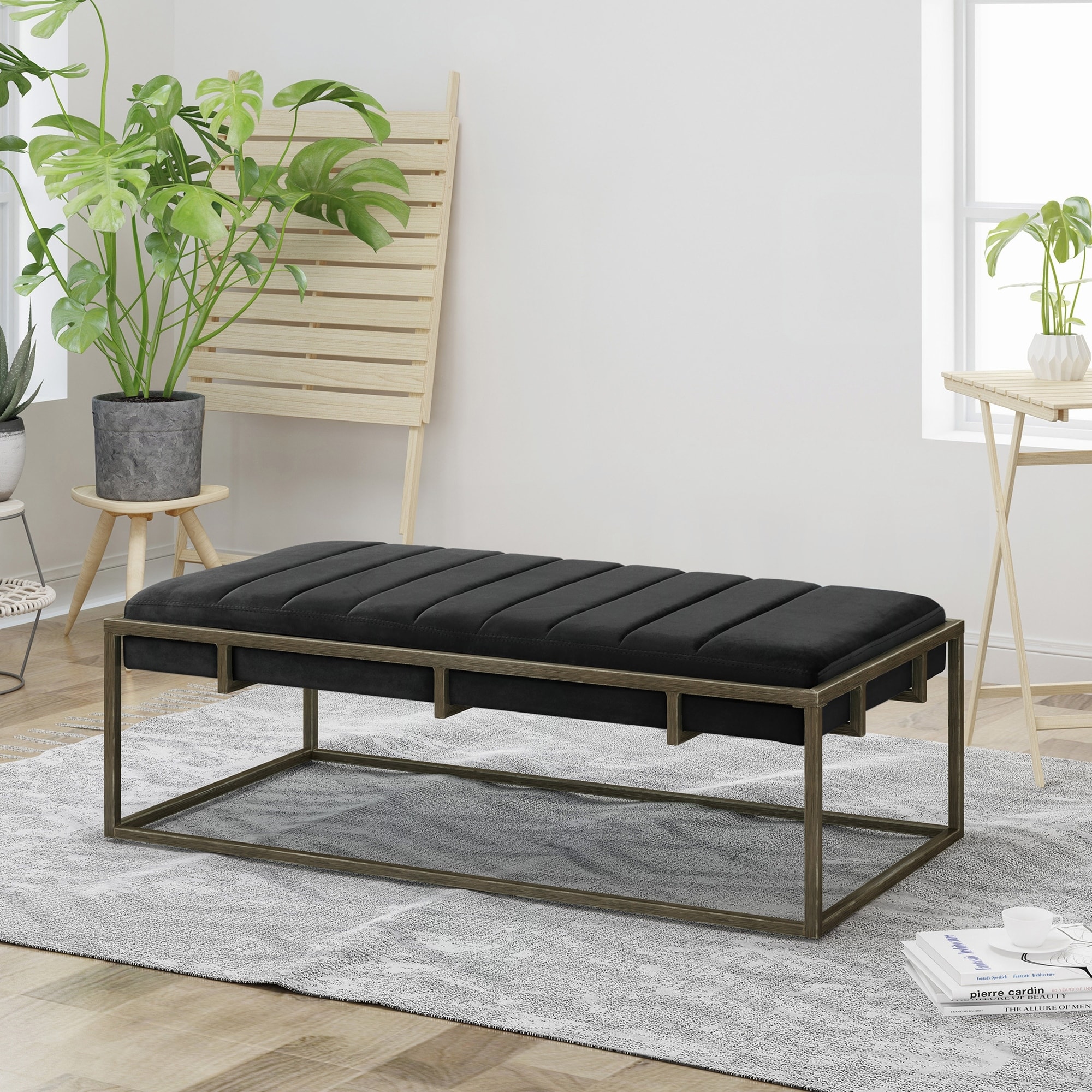 Upholstered Velvet Ottoman Bench with Brass Finish,Black