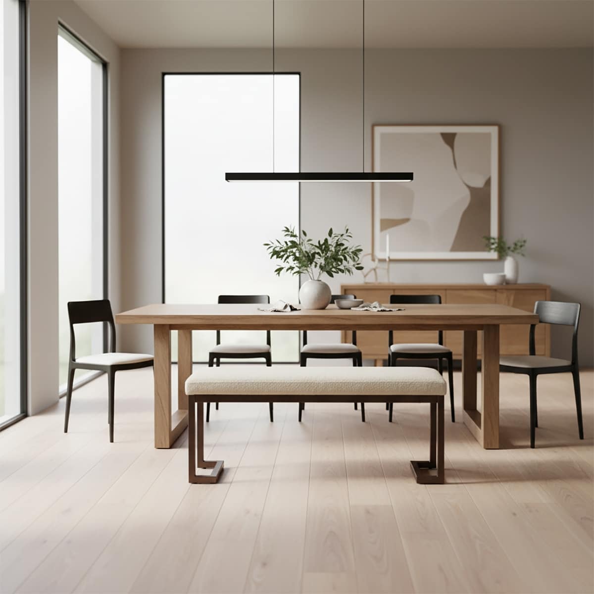 Contemporary Minimalist Bouclé Fabric Upholstered Bench with Metal Frame Legs
