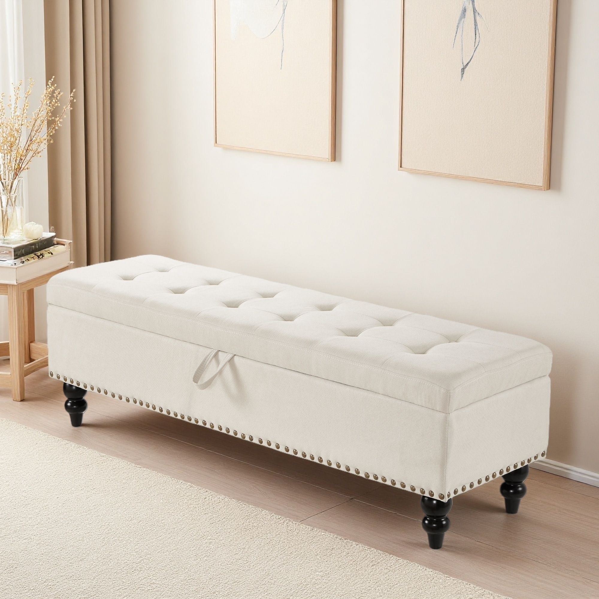 59"L Fabric Upholstered Bed Bench with Storage, Button Tufting, Nail Decoration, Multi-Functional Ottoman for Living Room