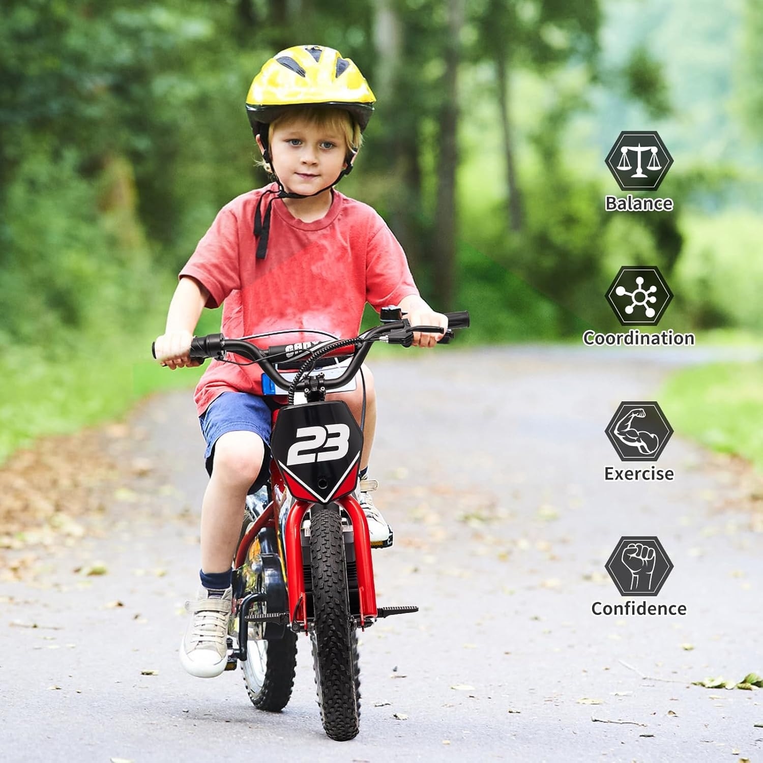 36V Kids Electric Dirt Bike with 2 Training Wheels, Max 16.5 Mph, Max Load 176lbs