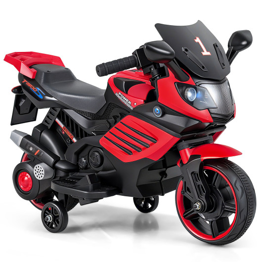 Costway 6V Kids Motorcycle with Headlights Music and Detachable Training Wheels-Red