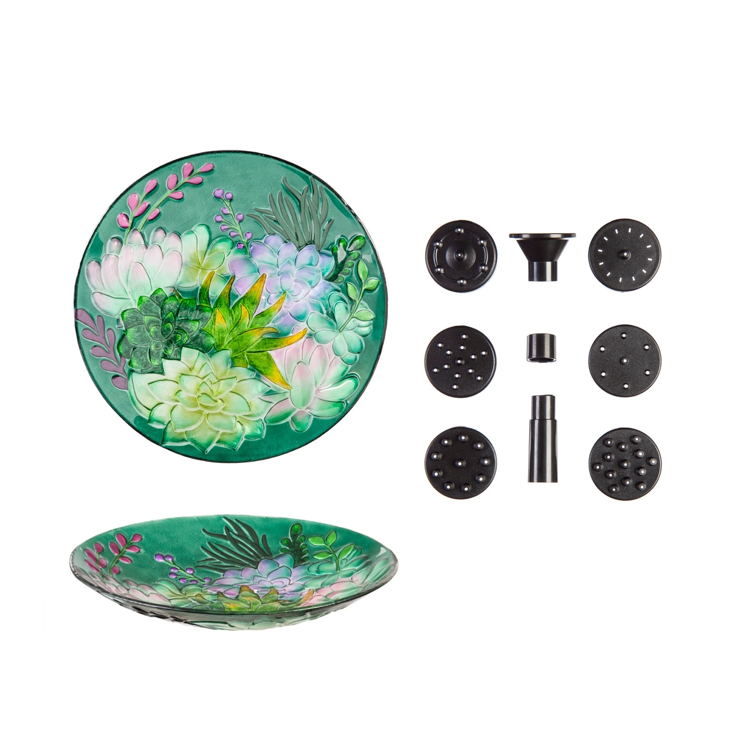 18" Glass Bird Bath Succulent w Solar Fountain
