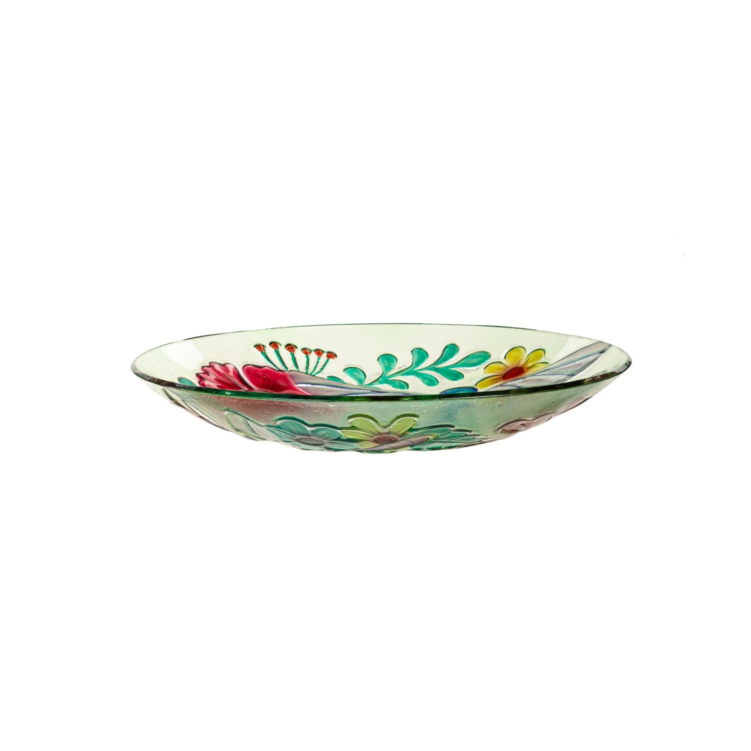 18" Hand Painted and Embossed Glass Bird Bath, Dragonfly Swirls