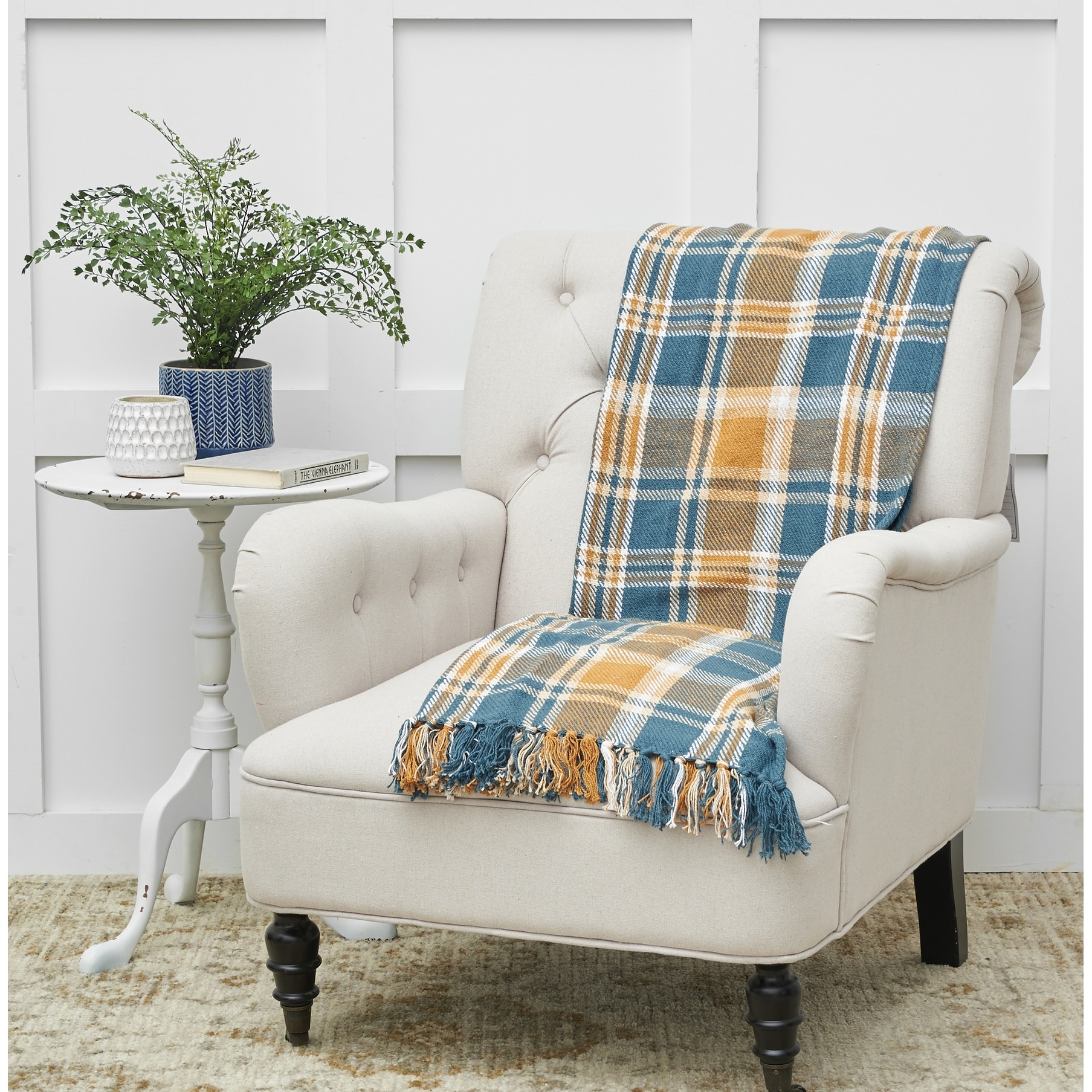 Blue Gold Plaid 50" x 60" Throw Blanket