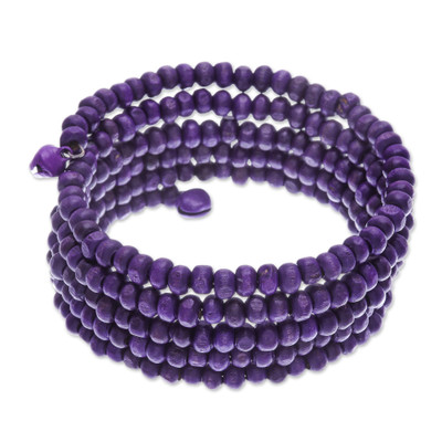 Purple Spin,'Purple Beaded Wood Wrap Bracelet with Bells (1 In)'