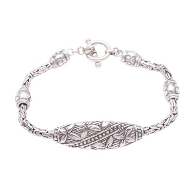 Flower Panel,'Floral Sterling Silver Pendant Bracelet from Bali'