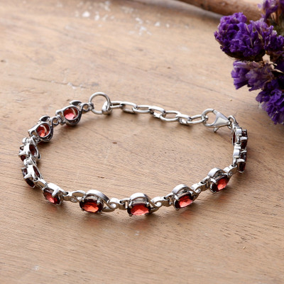'Rhodium-Plated Sterling Silver Bracelet with 11-Carat Garnet'