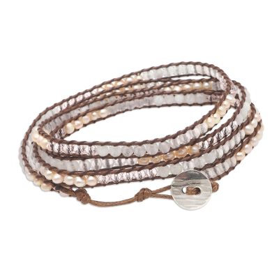 Pale Clouds,'Rainbow Moonstone and Rose Quartz Wrap Bracelet'