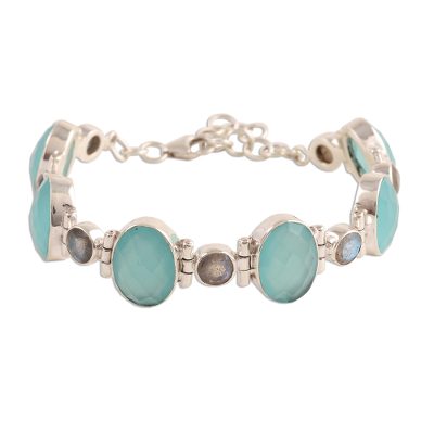 '26-Carat Chalcedony and Labradorite Link Bracelet from India'