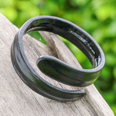 Young Bud in Black,'Unisex Black Dyed Leather Cuff Bracelet Handmade in Thailand'