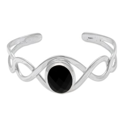 Double Helix,'Onyx and Sterling Silver Modern Balinese Cuff Bracelet'