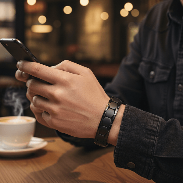Trendy Men Strength Therapy Magnetic Bracelet gold