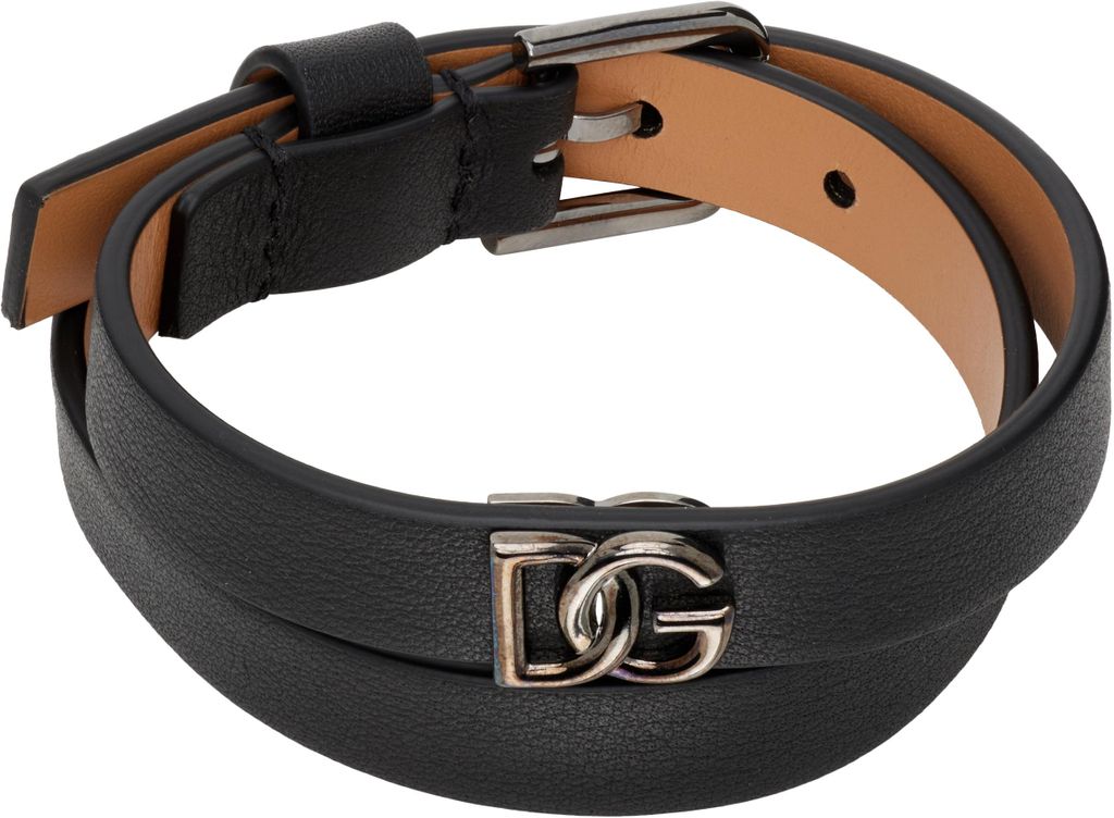 Calfskin 'Dg' Logo Bracelet - Black - Dolce & Gabbana Bracelets