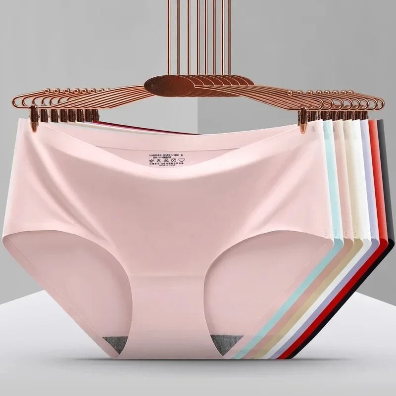 Seamless Ice Silk Womens Mid Waist Panties Soft Breathable Stretch Briefs In Multiple Colors M To XXL xl beige