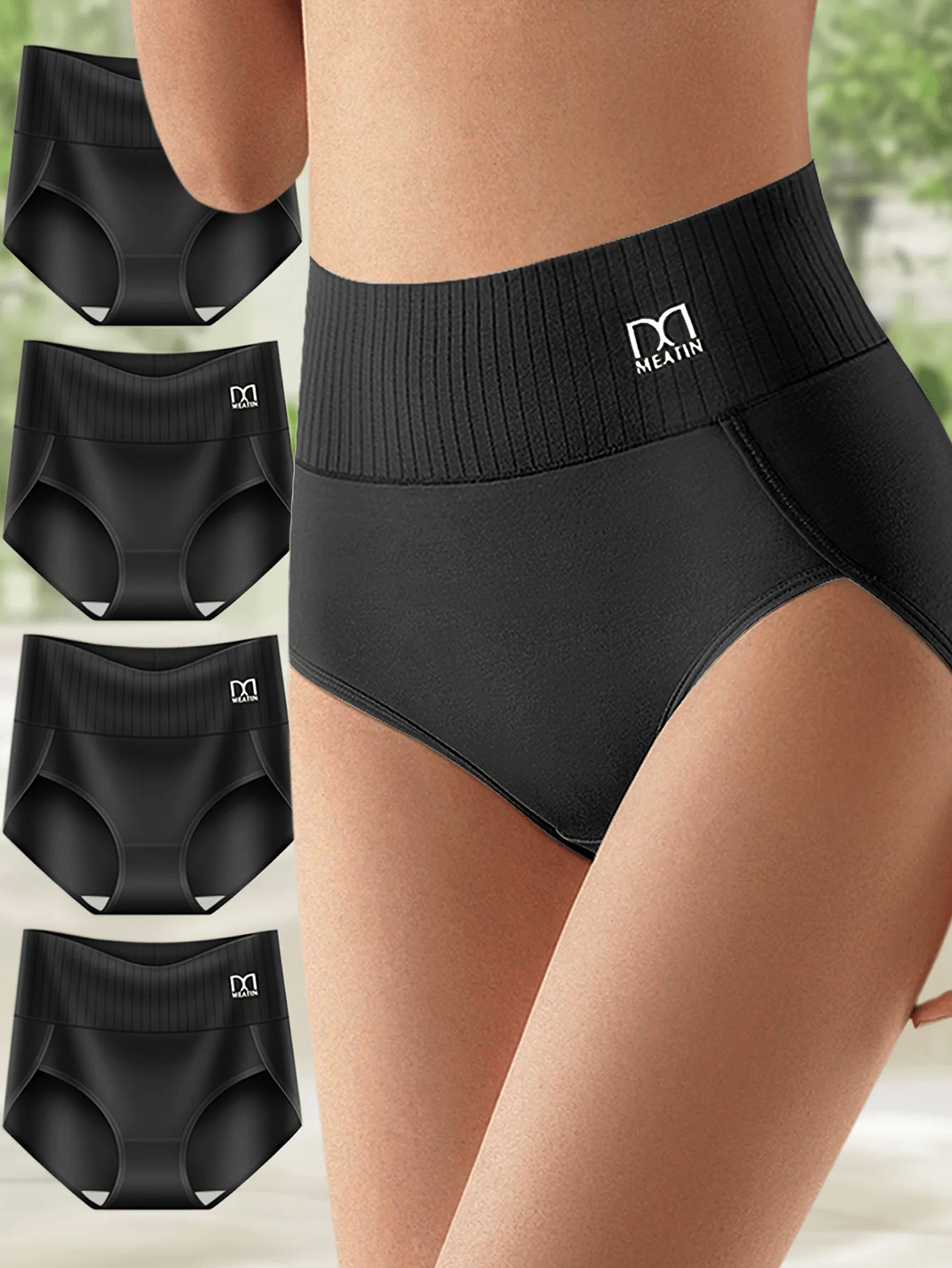 High Waisted Tummy Control Womens Cotton Panties 4 Pack Breathable Underwear l 4 Pcs