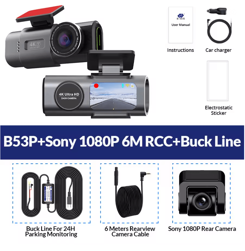 4K UHD Dash Cam With Night Vision Wi Fi Car DVR With GPS & 24H Parking Monitoring b53p 6m Rc bl none