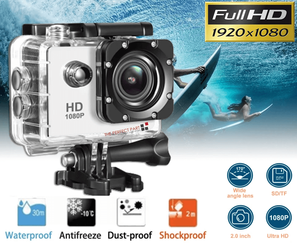 HD Action Sport Waterproof Camera, 20MP Camcorder Video Recorder With LCD, Diving Case & Accessories white