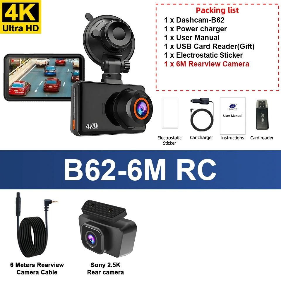 4K Dual Lens Dash Cam With GPS WiFi Night Vision Front And Rear Camera 64g b46p 6m Rcc