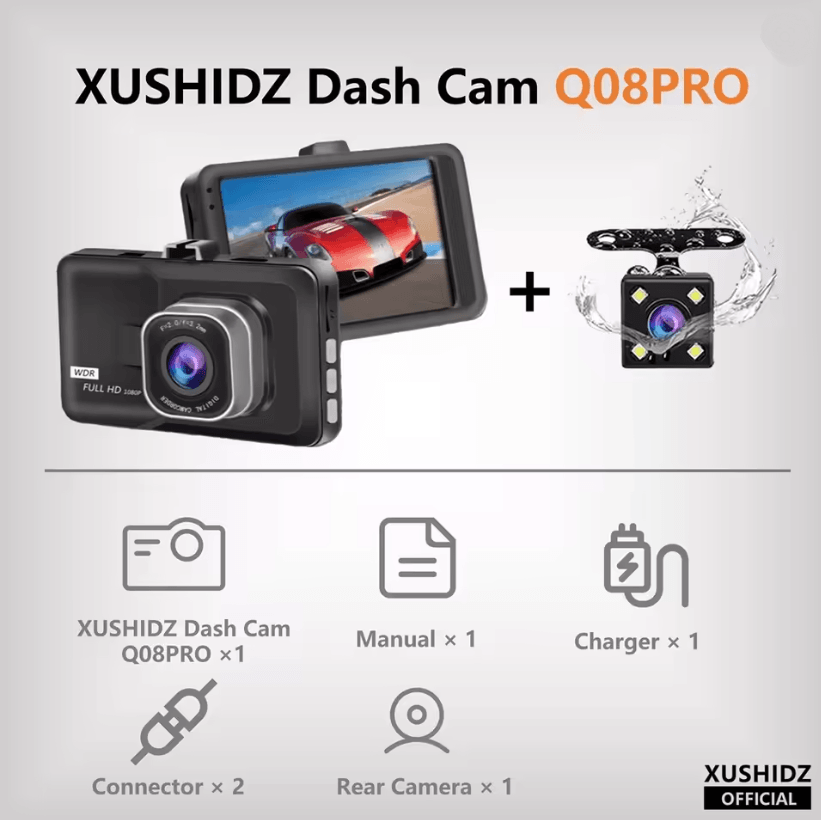XUSHIDZ 1080P HD Dash Cam With Night Vision And Parking Monitor q08pro N Rear Camera 16g
