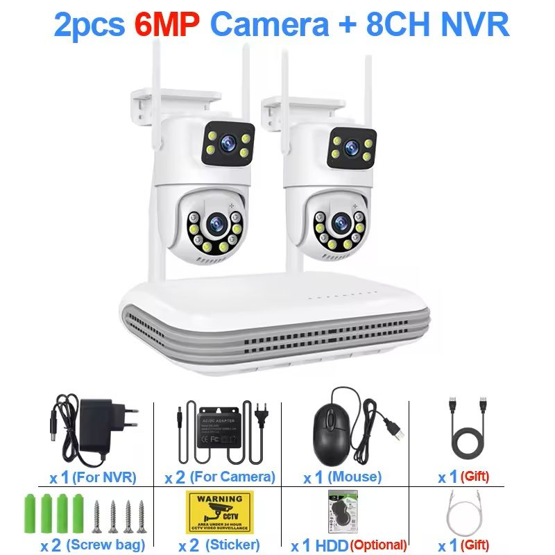 Wireless CCTV Security Camera System With Dual Lens Cameras And 8CH NVR 8ch Nvr + 2 Cam 1tb