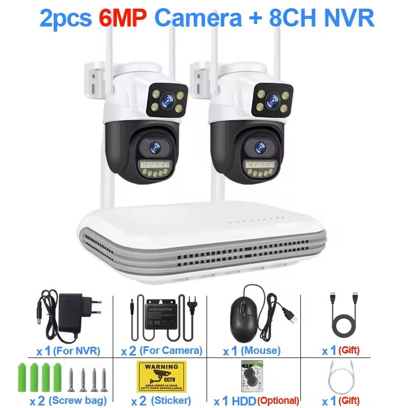 Wireless CCTV Security Camera System With Dual Lens Cameras And 8CH NVR 8ch Nvr + 2 Cam B 500gb