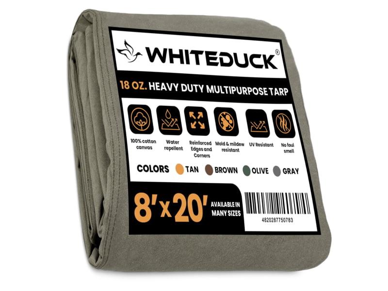White Duck 18 oz. 100percent Cotton Canvas Tarp Olive 8x20ft FBA-YJ-CAQH-XJL2