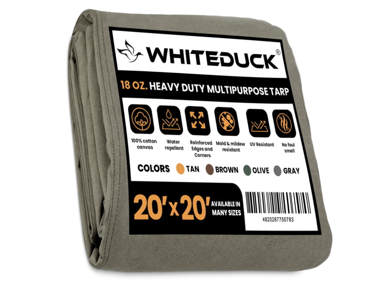White Duck 18 oz. 100percent Cotton Canvas Tarp Olive 20x20ft FBA-WD-0044