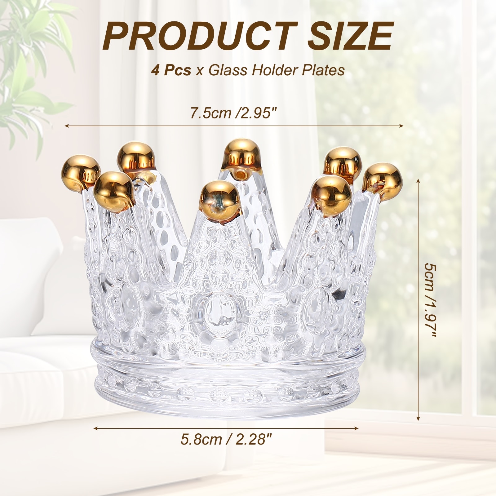 Tealight Candle Holder, 3 Inch Glass Crown Candle Holder Incense Holder Candlestick for Tea Light Aromatherapy Wedding