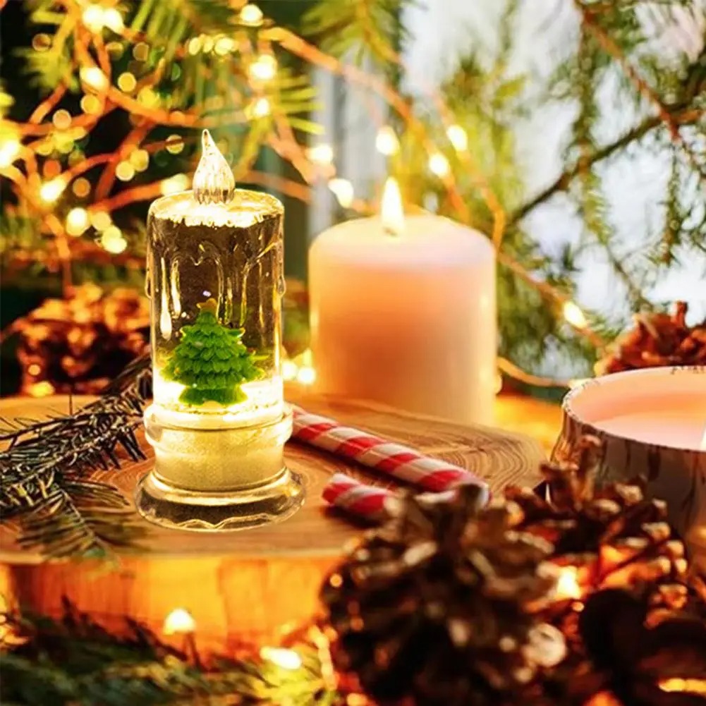 LED Flameless Christmas Candles With Santa & Xmas Tree Figurines Safe Battery Operated Holiday Decor Gift christmas Tree