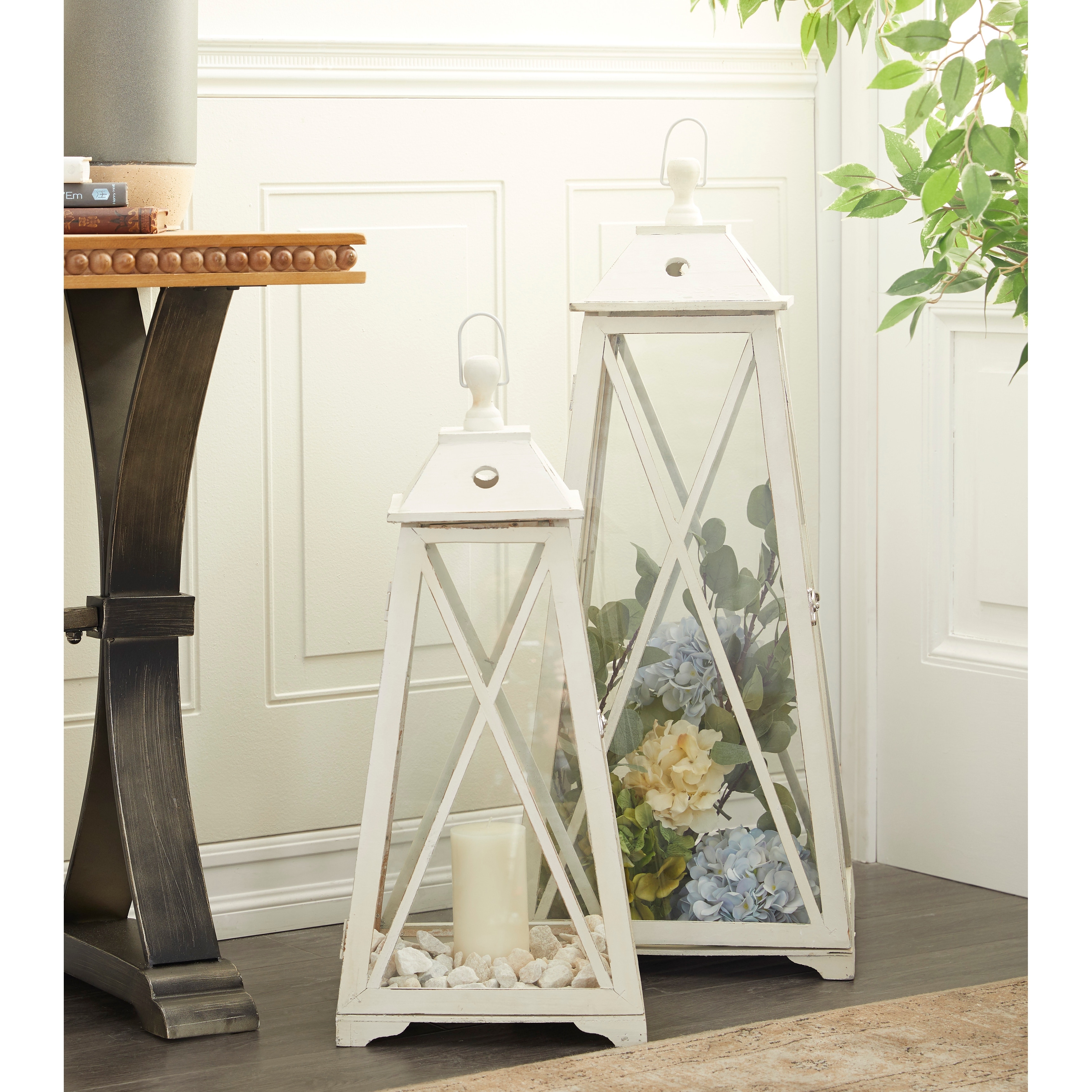White Metal Lighthouse Style Decorative Candle Lantern (Set of 2)
