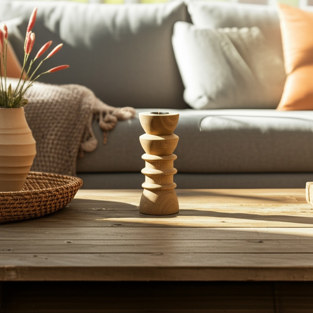 Mango Wood Candle Holder Carved Design Decorative Sculptural Accent