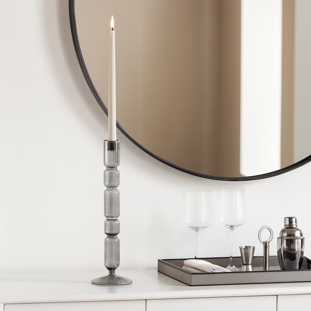 Glass Mixed Bubble Taper Candle Holder - Smoke