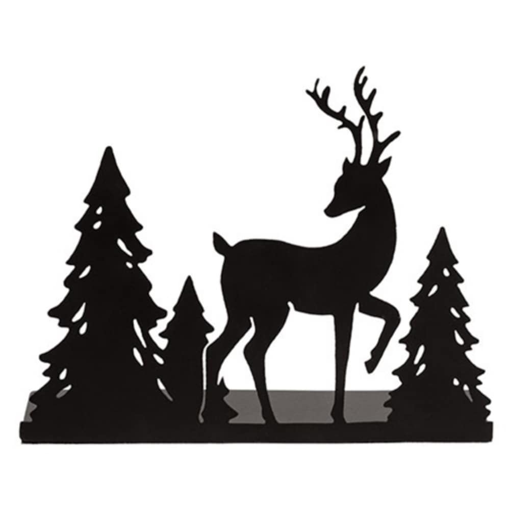 Woodland Forest Design Black Metal Candle Holder with Reindeer and Trees for Home Decor - 5" H x 6.5" W x 2" D