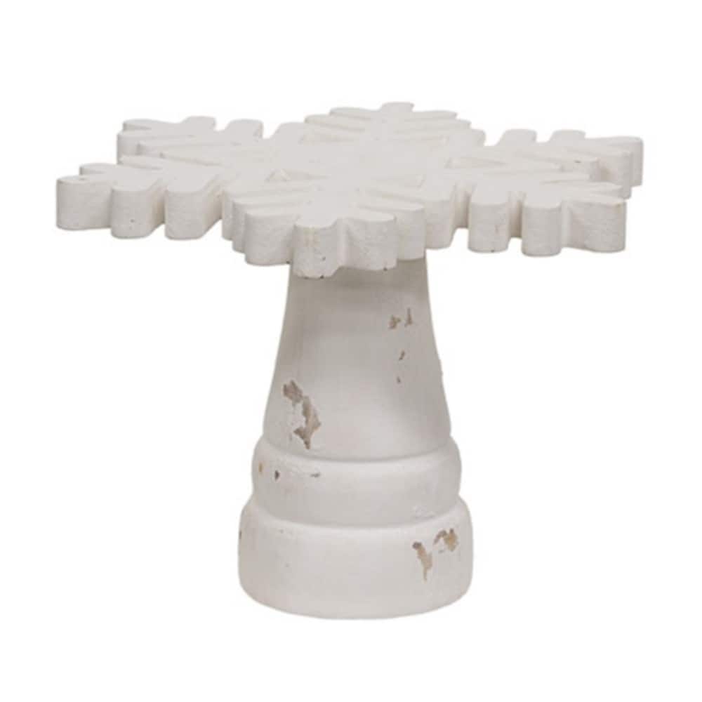 Distressed Wood Snowflake Candle Holder Pedestal for Christmas Centerpiece and Mantel Display
