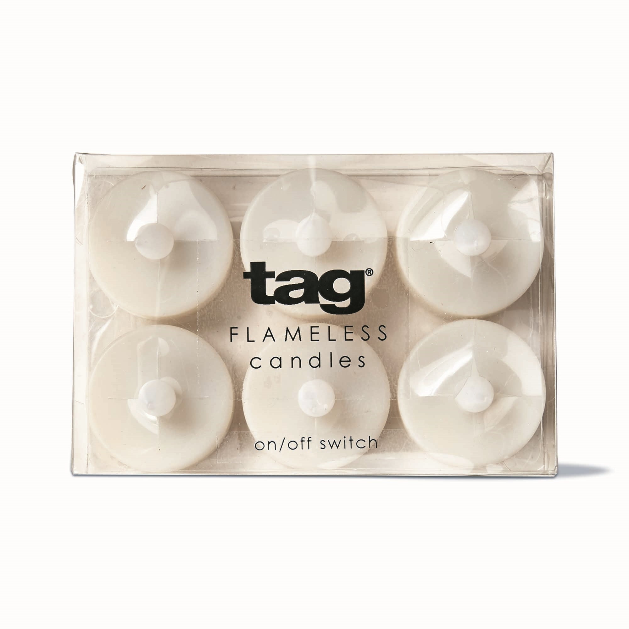 Set of 6 Ivory LED Tealights - Flameless Candles for Everyday Use, 1.38" H x 1.5" Dia, Safe Plastic Design