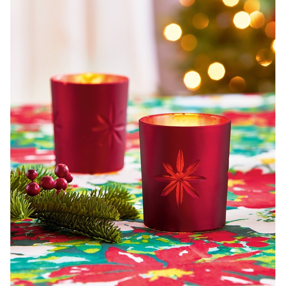 Cosmo Round Tealight Holder Red Glass Candle Holder for Christmas 3x3x3.5 Inches Wipe with Damp Cloth
