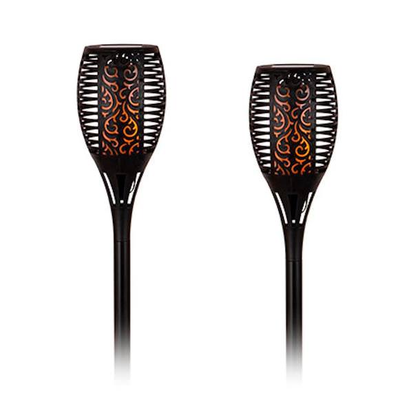 Gerson 45669 - Set of 2 44"H Black Solar Fireglow Stakes 12 LED Lawn and Garden Hanging Lanterns