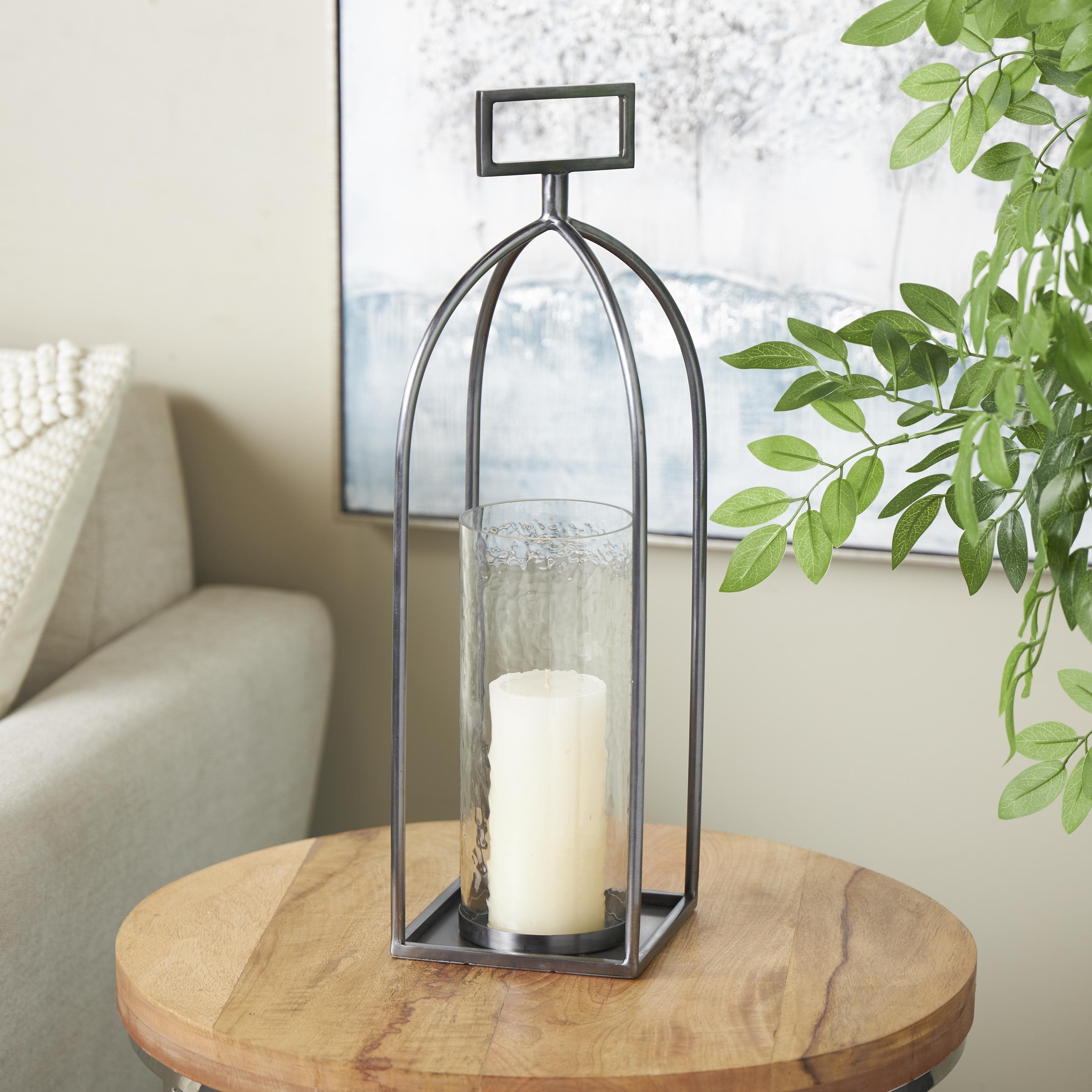 Silver Metal Open Frame Indoor Outdoor Candle Lantern with Rectangle Handles