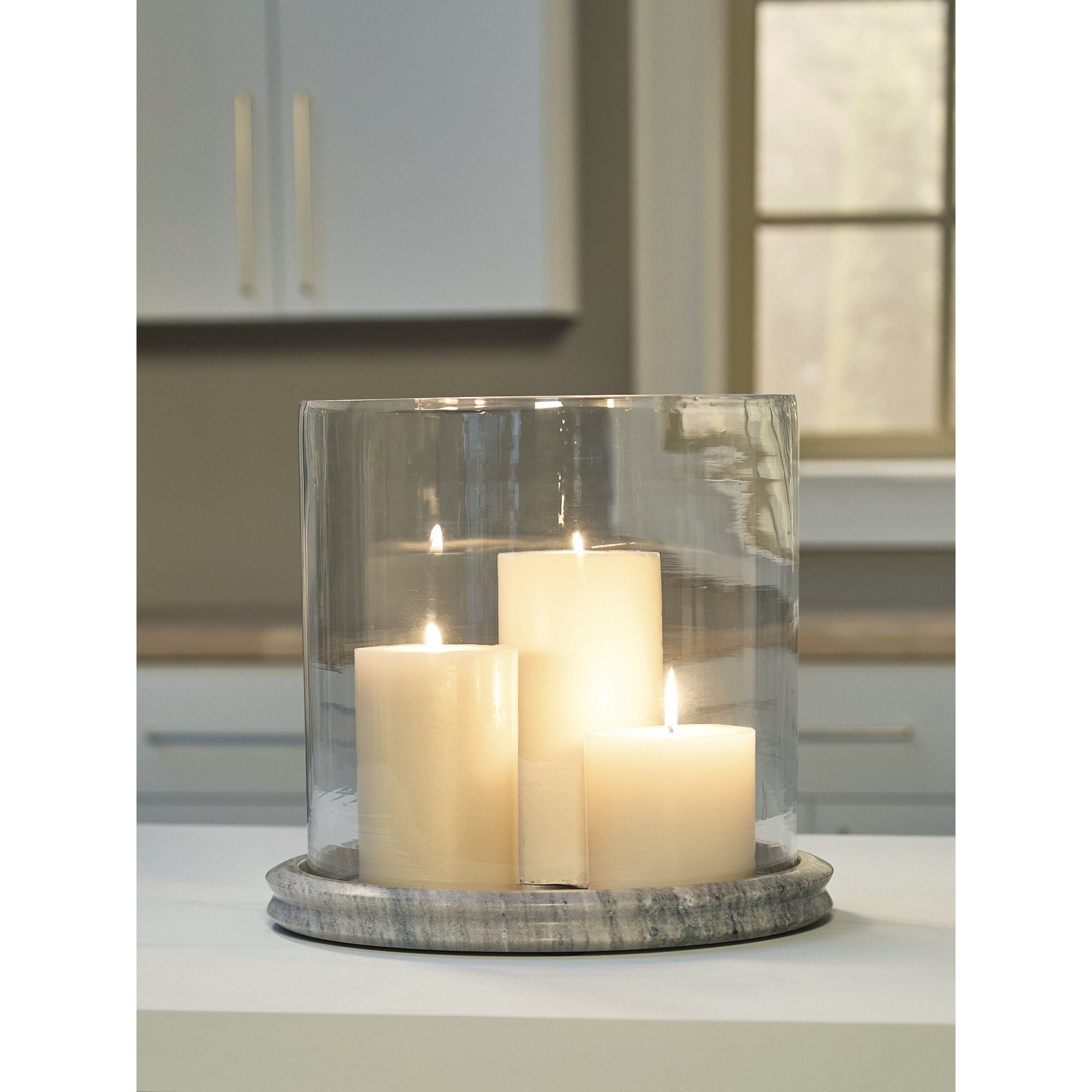 Sagebrook Home Elegant Aluminum, Marble, and Glass Candle Holders - Enhance Home Ambiance, Set of 3 - 5" x 4" x 15"