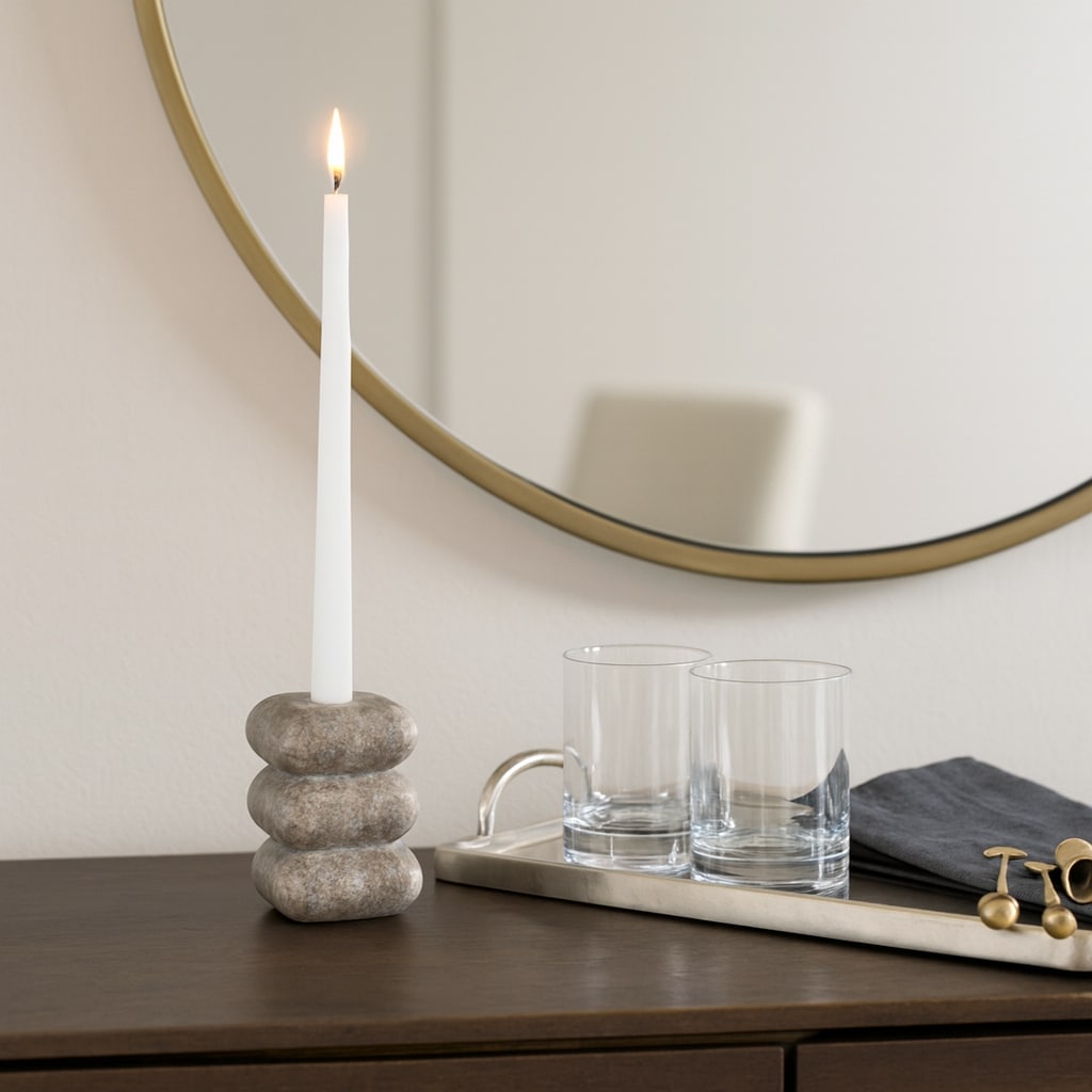 Marble Curved Modern Taper Candle Holder - Beige, 5 in. - 4.75"