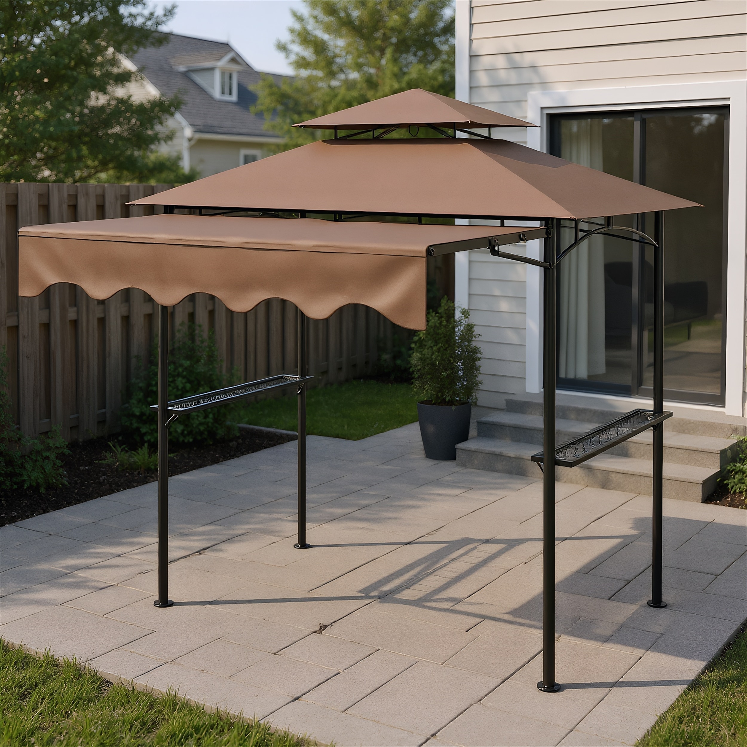 Adjustable BBQ Gazebo with Double-Top Canopy, 8'x5' Outdoor Shelter