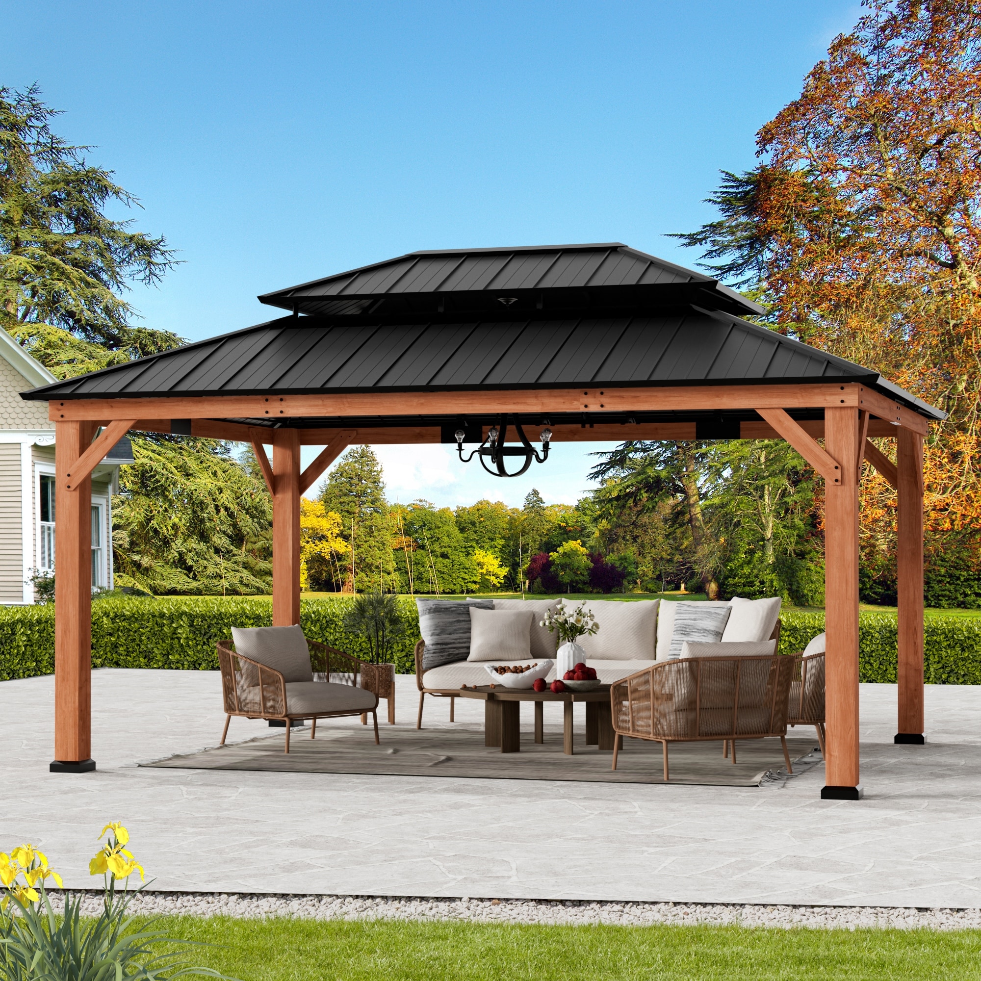 Modern Shade Wood Gazebo 12' x 16', Grill Gazebo with Galvanized Steel Roof, Permanent with Sturdy Hooks for Garden, Backyard