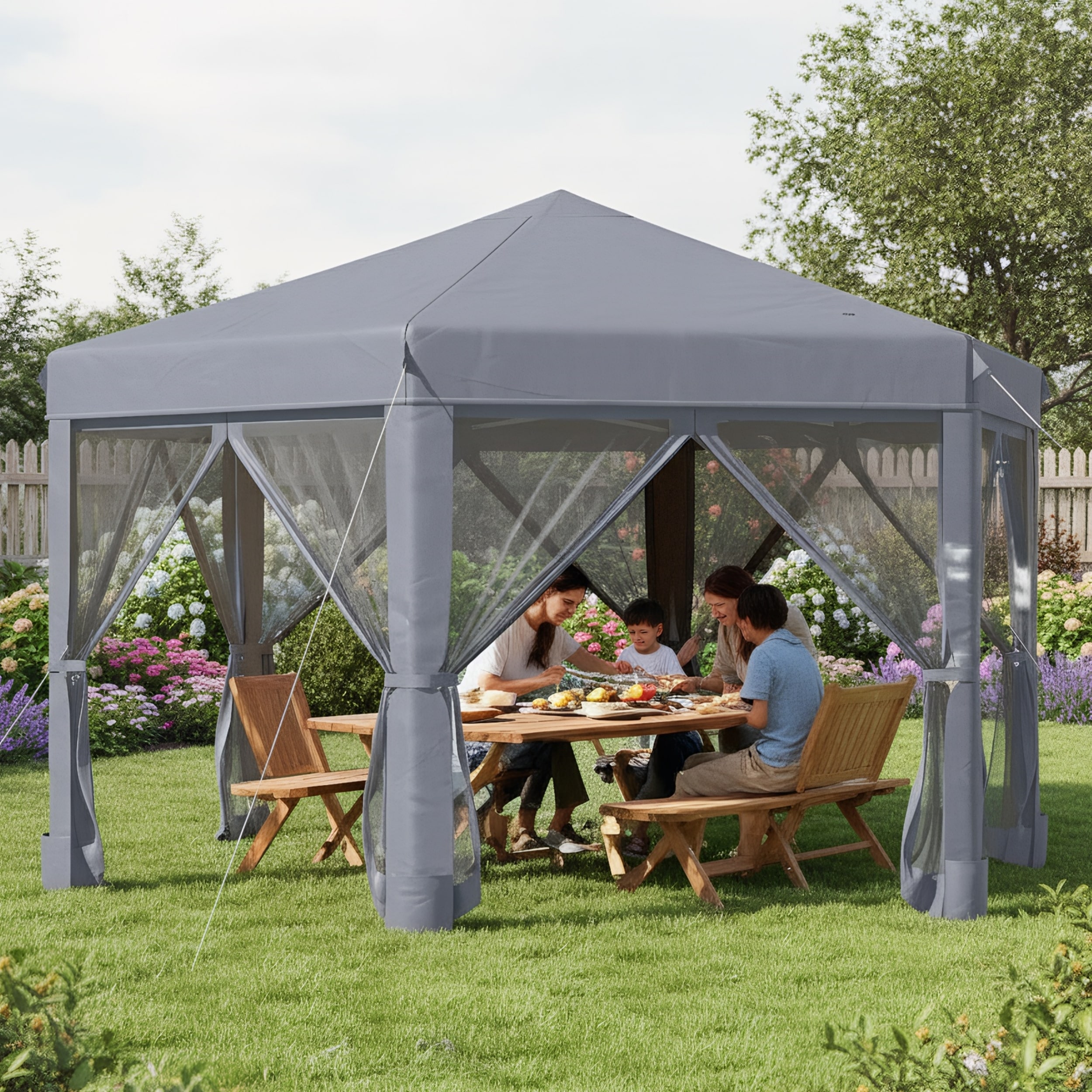 Hexagonal Pop-Up Canopy Tent w/ Mesh Walls,10.5'x12.5' Outdoor Shelter