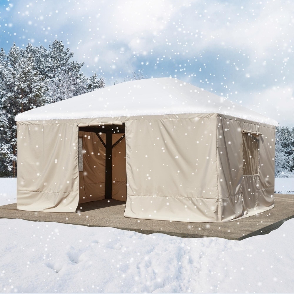 Winter Gazebo Cover with Sidewalls, Waterproof Outdoor Enclosure for Hardtop Gazebos, Beige