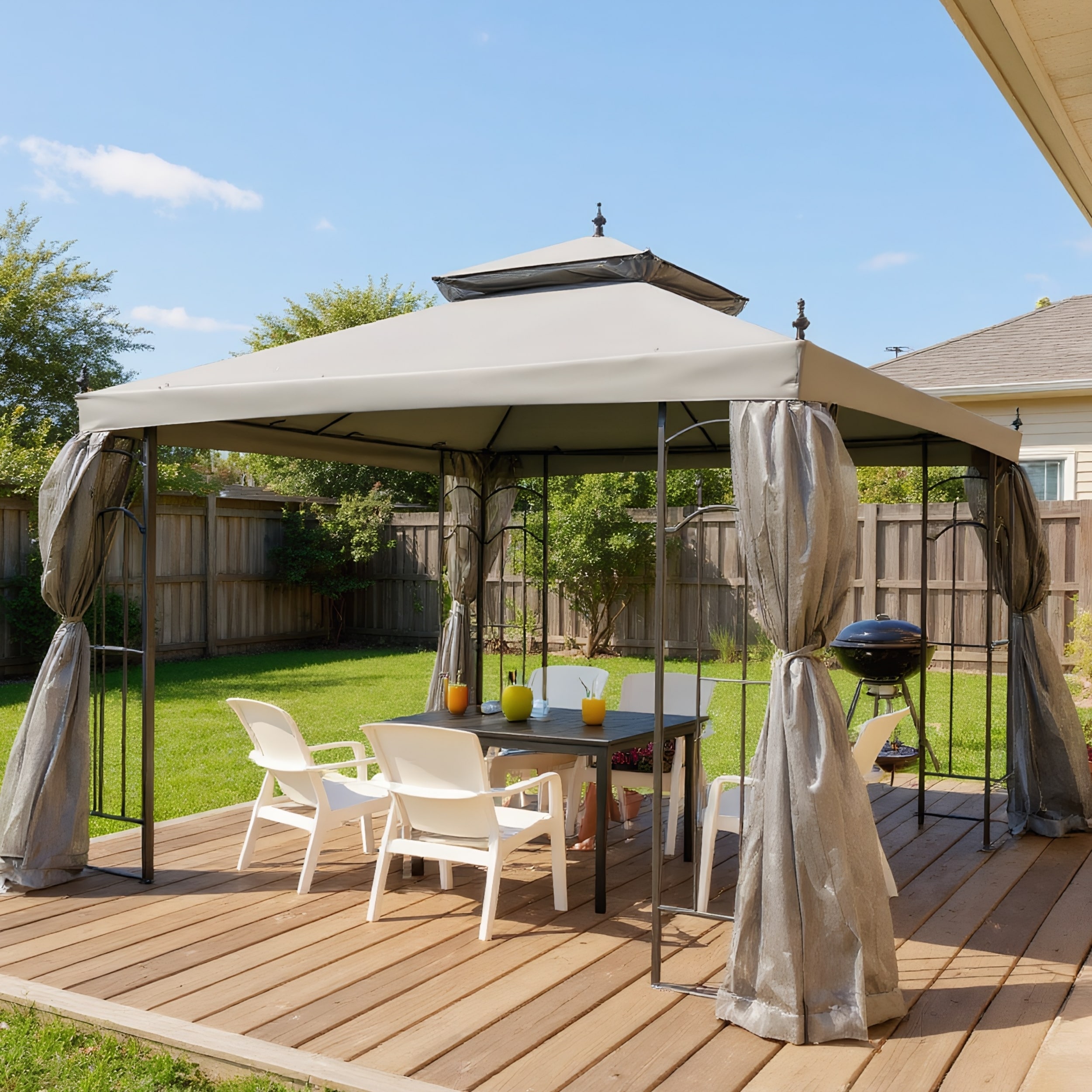 Outdoor Gazebo with Corner Shelves and Double Canopy