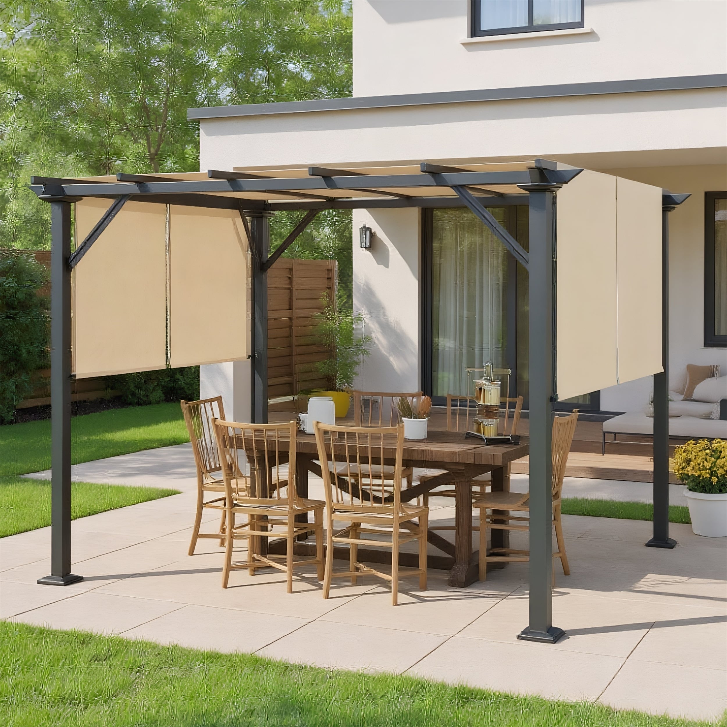 10' x10' Steel Pergola with Retractable Canopy and Adjustable Shade